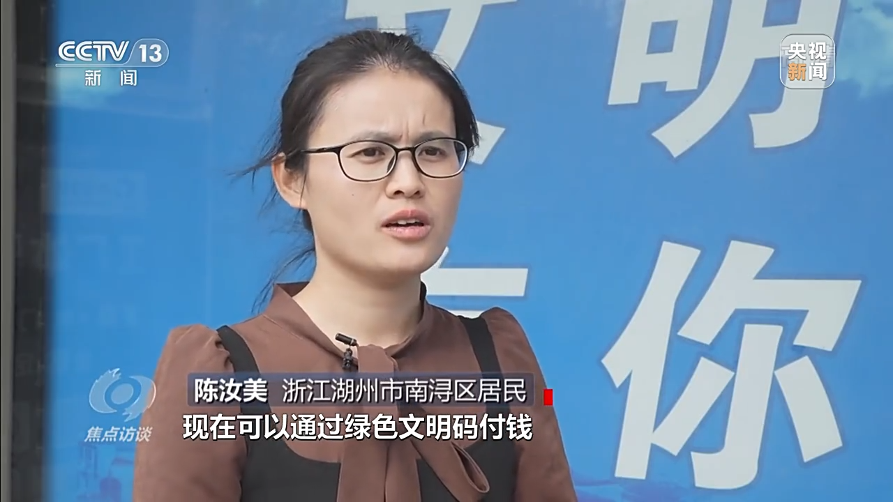 浙江湖州市南浔区居民 陈汝美:我们原先是通过扫码付钱乘车的,现在可以通过绿色文明码付钱,付完钱我们还可以获得5个积分。