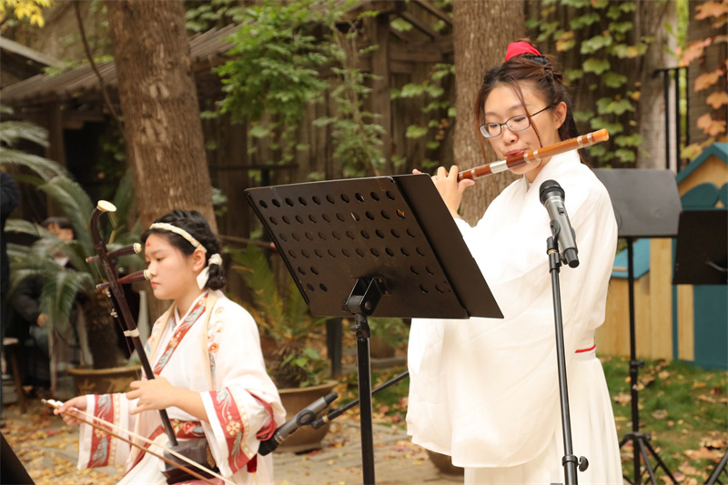 参加活动的同学举行了诗歌音乐沙龙、吉他弹唱、二胡与竹笛重奏、小提琴二重奏、钢琴独奏等表演。诗歌音乐沙龙上还举行了“红叶之歌”主题词曲征集启动仪式。冯研院为明年的红叶季做了特殊准备,面向所有热爱创作、热爱音乐的老师、同学们征集原创歌词、乐曲和歌曲。经过专业的评审,优秀的作品将在明年的红叶季以专题展演的方式呈现给大家。