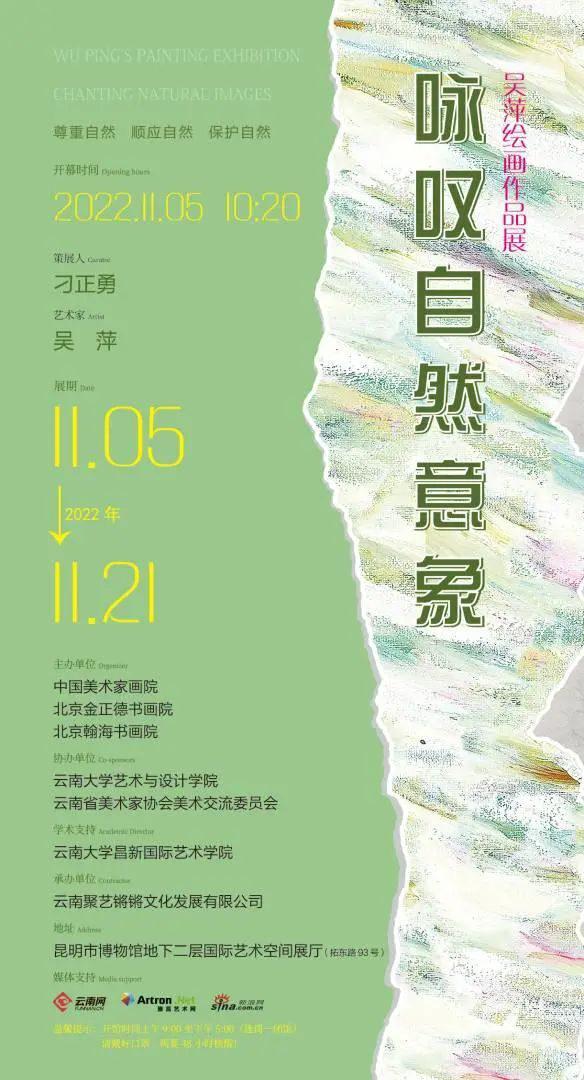 昆明信息港讯 11月5日,咏叹自然意象——吴萍绘画作品展将在昆明市博物馆开幕。此次画展将展出吴萍近几年创作的油画、水粉画作品,11月21日前,市民可前往免费观展。