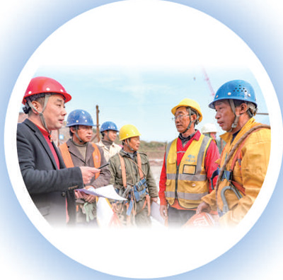 四川省华蓥市法治宣讲团成员在物流园区建设工地向农民工讲解相关法治知识。邱海鹰/摄