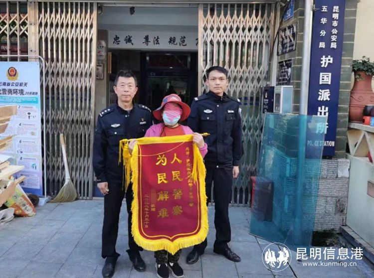 10月31日下午,一名老人拿着锦旗步履蹒跚地走进昆明市公安局五华分局护国派出所值班室,老人告诉值班民警,要亲手将锦旗送到民警刘忠雄手中。