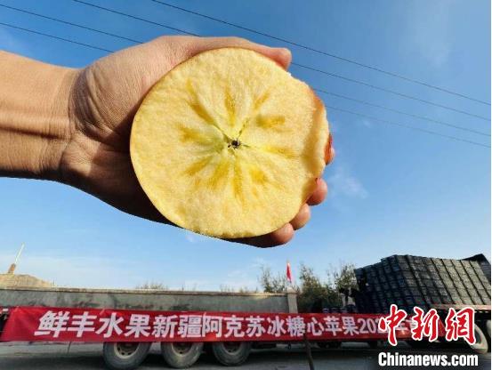 中新网乌鲁木齐11月3日电 (王小军 贾宇辉)“他们从我们这里收购了几十吨的冰糖心苹果,解决了苹果销售难题的同时,也让我们的苹果走向全国各地。”新疆阿克苏市红旗坡园林六队果农王红连如是说道。