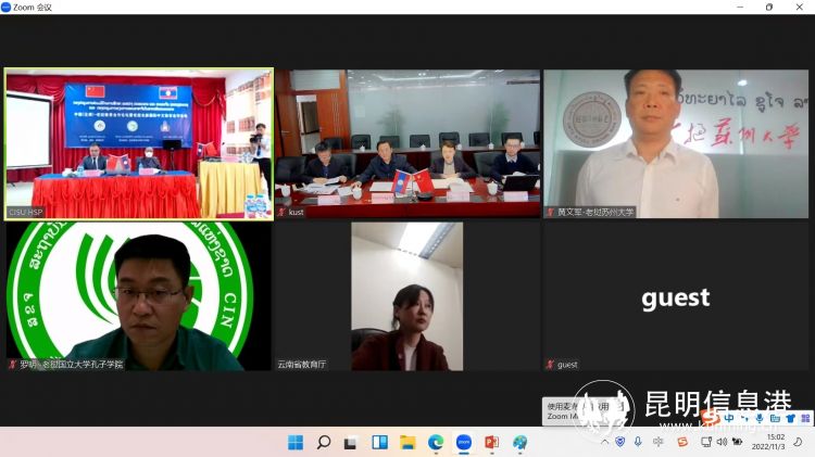中国驻老挝琅勃拉邦总领事李志工、老挝苏发怒冯大学校长维赛占萨旺、昆明理工大学副校长易健宏、云南省教育厅对外交流与合作处处长王源出席会议。老挝国立大学孔子学院、老挝苏州大学及老挝北部八所华文学校负责人和教师代表参加论坛开幕式,发怒冯教育厅、及省属八所高校的代表在线上参会。