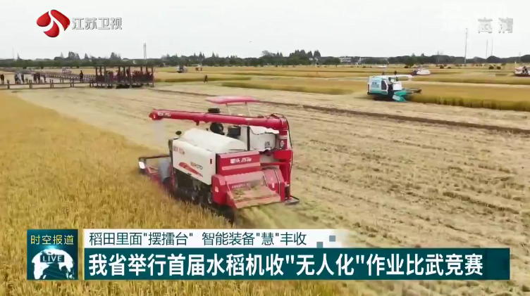江苏台记者郝朦报道:“稻浪滚滚迎丰收,无人农机显身手!在无锡锡山区一处稻田里,来自全省各地的20支代表队派出他们最强的智能装备阵容。在规定的时间内,他们将又快又好地完成指定面积的水稻收割工作,并根据智能化表现和机收减损程度进行综合打分。”