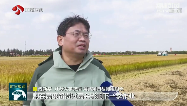 江苏大学教授、竞赛第四裁判组组长魏新华说:“它的损失率要低,要做到颗粒归仓,另一个是割茬高度,割茬高度留得过高会影响下一季作业,所以我们对这些方面都有限制,都有评判的标准,在考虑实际生产需求情况下来提高智能化水平,更有利于设备后面的推广和示范应用。”