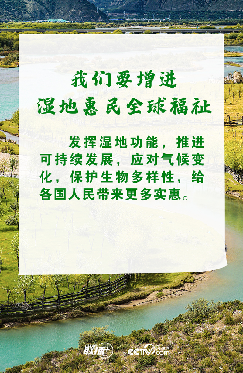 习主席在致辞中强调了湿地保护的重要性,介绍了中国湿地保护取得的历史性成就,并对湿地保护全球行动提出三点中国主张和中国行动方案,彰显了生态环境保护的大国担当。央视网《联播+》梳理习主席讲话,与您一起学习。