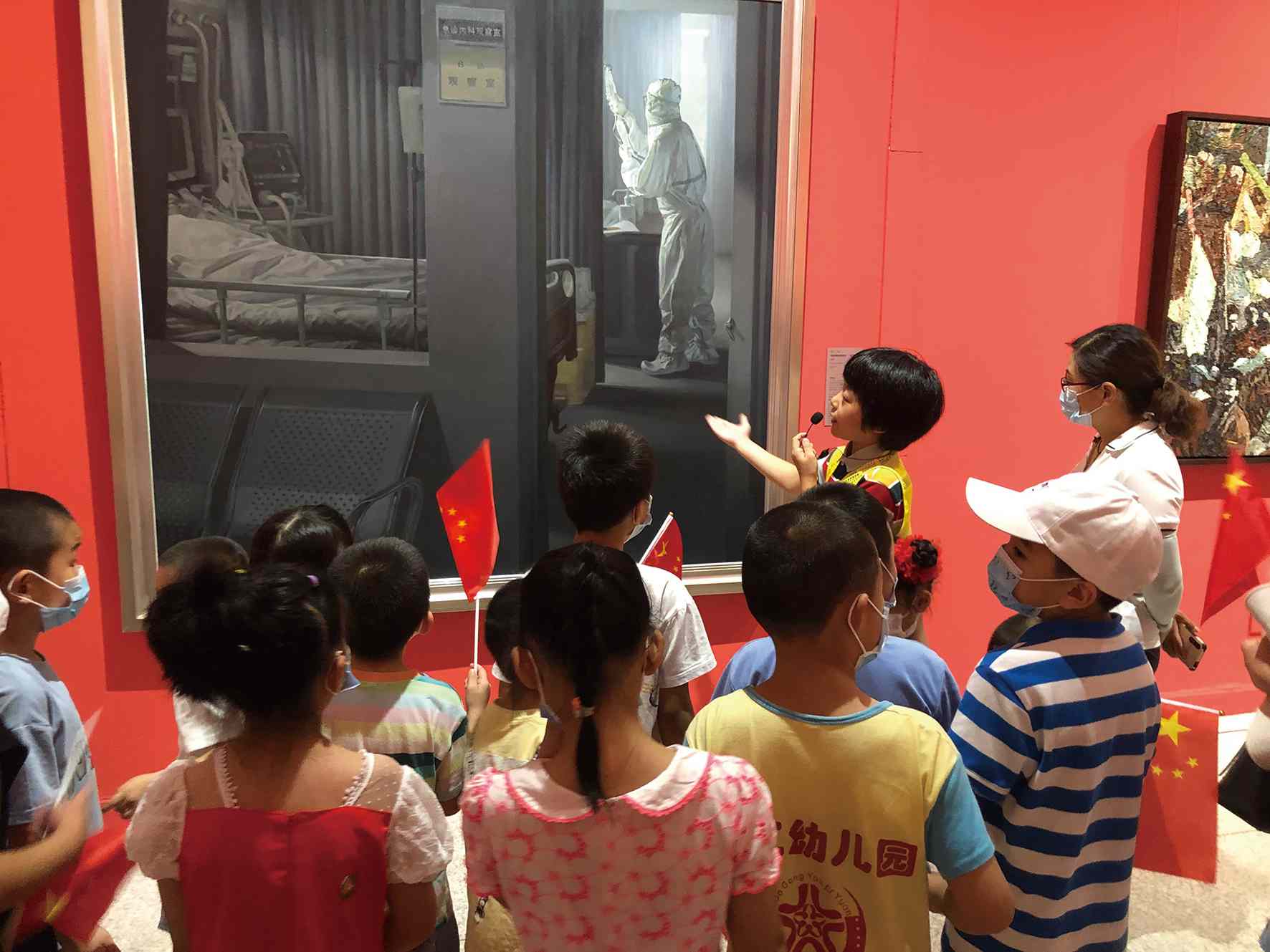 “壮丽航程——庆祝中国共产党成立100周年湖北优秀美术作品展”举办期间小志愿者为亲子家庭讲解艺术作品