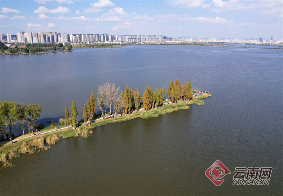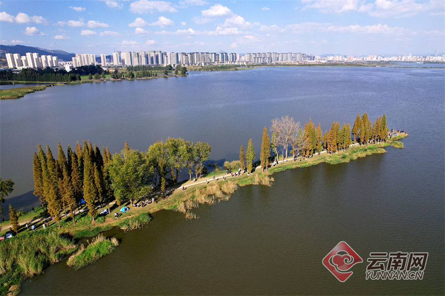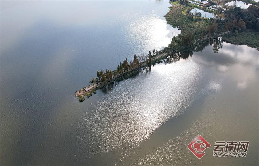 位于滇池草海北岸的干沟尾近日“火”了,每天都有数百人到此打卡。秋日的干沟尾河堤两岸的银杏、水杉树在阳光的照射下,透出黄与红的灿烂秋景,纯朴而自然,昆明周边又添不可多得的天然景点,不少摄影爱好者操作无人机在空中一睹曾“天空之镜”。