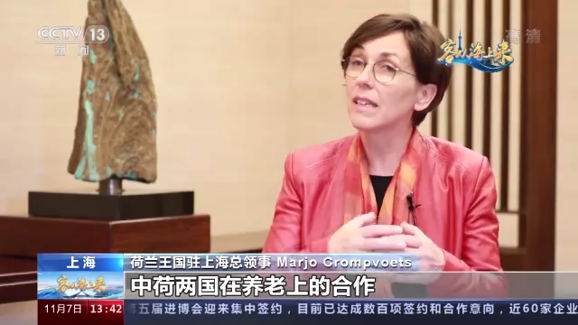 荷兰王国驻上海总领事 Marjo Crompvoets:中荷两国在养老上的合作不仅是局限在诸如北京、上海这样的大城市。例如荷兰企业的居家护理服务不仅在上海,同时也落地了浙江安吉、宁波和海宁。还有荷兰建筑设计机构,也参与了四川省蓬溪县乐龄养老中心的设计。因此我们与中国的养老合作是很广泛的。我们相互学习借鉴。例如,在中国开展得非常好的社区养老模式,就很值得荷兰借鉴,并加入我们的养老体系中去。(总台央视记者 马力 高兴)