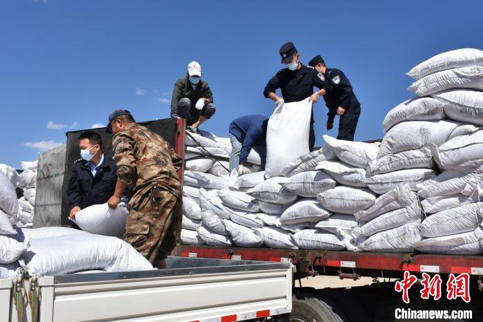 明水边境派出所民警帮助牧民卸载草料。(资料图) 甘肃出入境边防检查总站供图