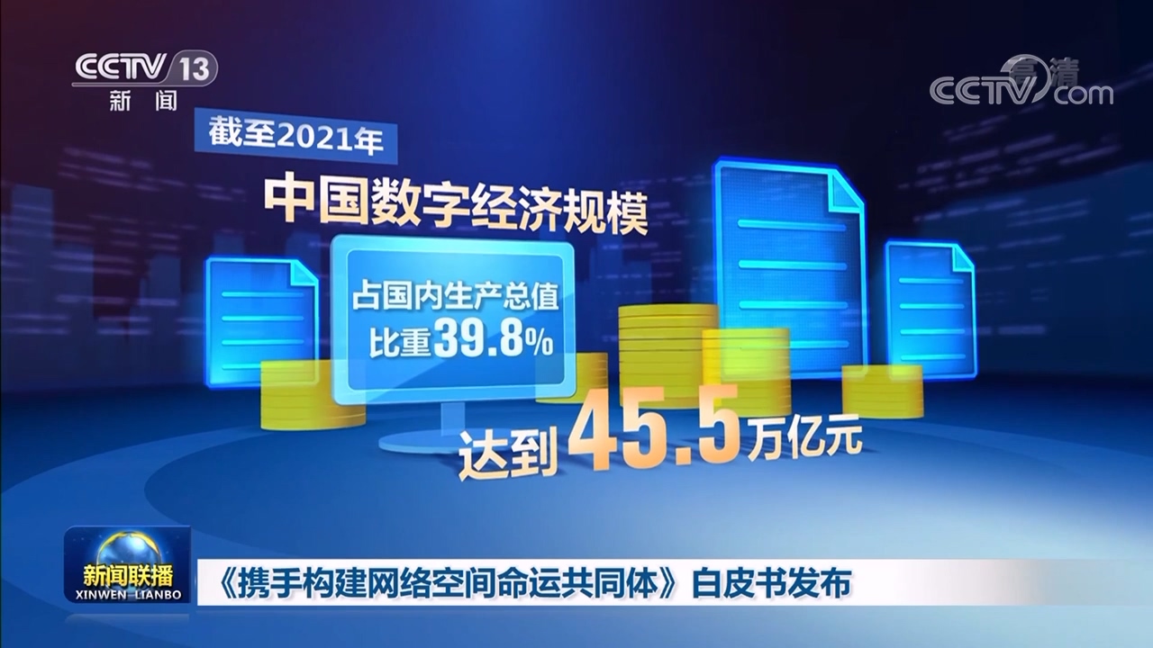 白皮书共约2.4万字,以中、英、法、俄等八个语种发布。白皮书介绍,截至2021年,中国数字经济规模达到45.5万亿元,占国内生产总值比重为39.8%。截至2022年6月,中国网民规模达10.51亿,互联网普及率提升到74.4%。5G移动电话用户数达4.55亿,建成全球规模最大5G网络,成为5G标准和技术的全球引领者之一。