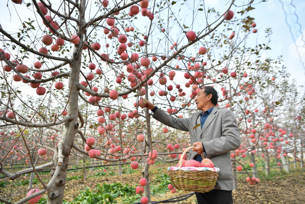 握住果实、轻轻一转,66岁的村民赵永东摘下一颗苹果。“家里20亩果园,去年赚了12万元。今年苹果品相更佳、行情更好,收入不会差。”说起种苹果,平时言语不多的他头头是道:“除了下苦功,还得会管理、懂技术。”