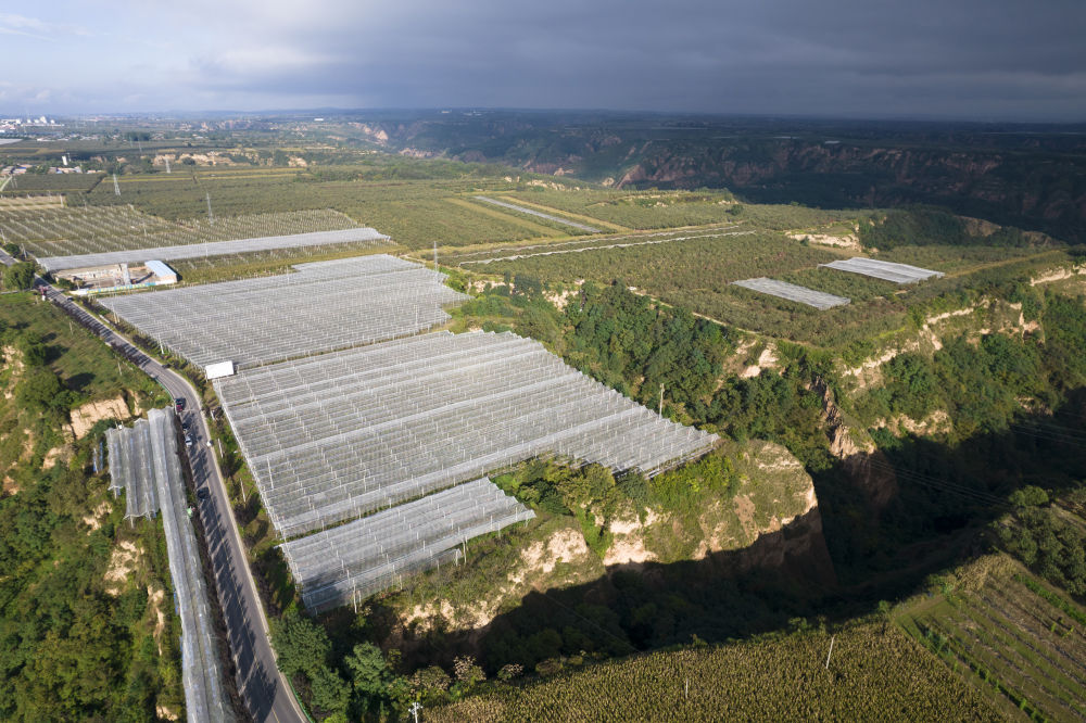 这是9月20日拍摄的陕西延安市洛川县旧县镇的苹果林(无人机照片)。新华社记者邵瑞/摄