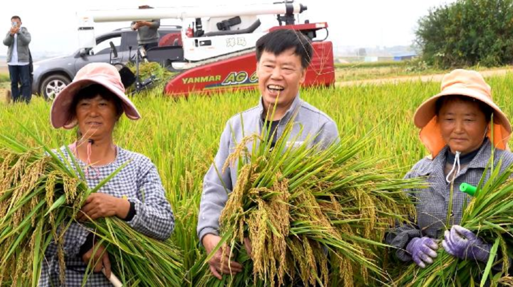 沃野生金,稻谷飘香。在中和营镇,朱有勇与其团队的水稻旱地种植试验田迎来丰收。