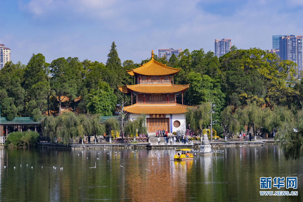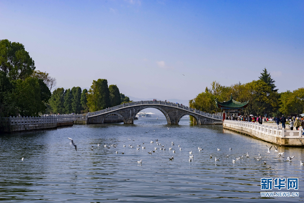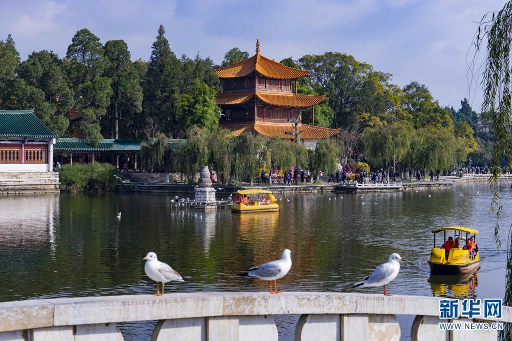冬日暖阳 昆明大观公园人鸥“喜相逢”