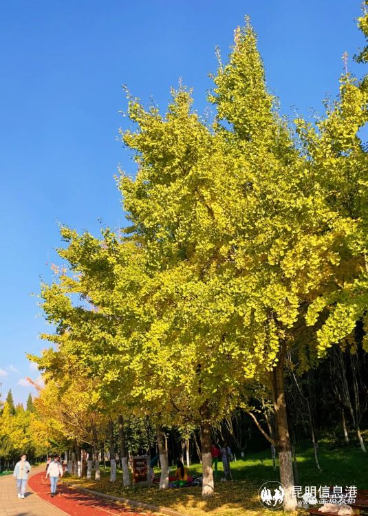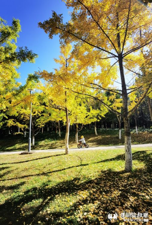 昆明信息港讯 记者段佳琪 银杏作为世界上最古老的树种之一,被称为恐龙时代的“活化石”。每当秋意渐浓,昆明呈贡就被染成金黄,在各交通干道、公园、各校园、回回营社区等,那一抹亮黄色总能给人带来温暖,仿佛走入一个童话世界。