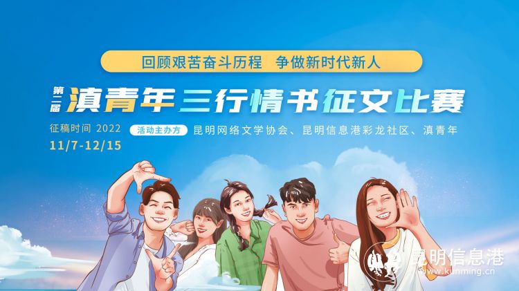 昆明信息港讯 记者周永烨 11月7日,昆明网络文学协会联合昆明信息港彩龙社区、滇青年发起了以“回顾艰苦奋斗历程,争做新时代新人”为主题的第二届滇青年三行情书征文比赛暨小滇图书计划。活动旨在激发高校学生爱国主义情怀,增强高校学生爱国主义认知,促进高校学生爱国主义行为。