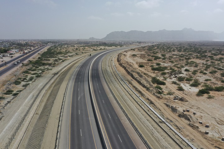 这是在巴基斯坦西南部俾路支省瓜达尔航拍的瓜达尔东湾快速路。