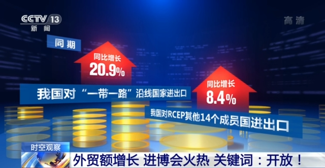 同期,我国对“一带一路”沿线国家进出口同比增长20.9%,对RCEP其他14个成员国进出口同比增长8.4%。