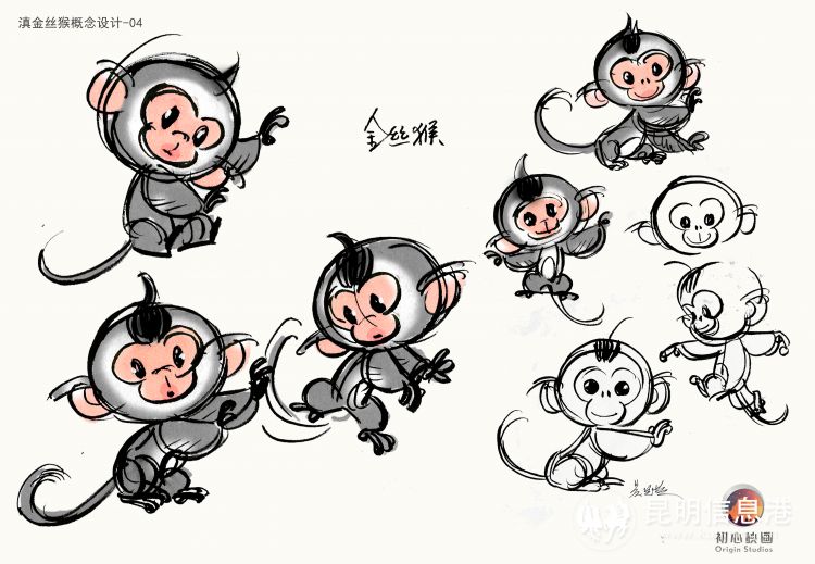 在“塔塔”的形象构造上,两位艺术家匠心独运,设计团队和园区通力合作紧密配合。不同于传统意义上的猴子形象,滇金丝猴外形最大的特点除了它饱满的嘴唇外,就是鼻子和头发了,所以最终的设计归纳就牢牢抓住了这一鲜明特点。虽然国内不乏以小猴子为原型的IP,但典型却不多,塔塔从形象上来讲,真正做到了差异化。