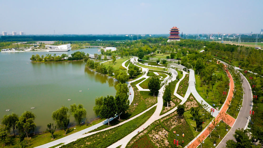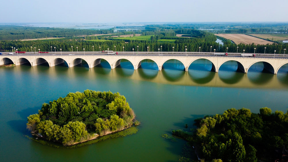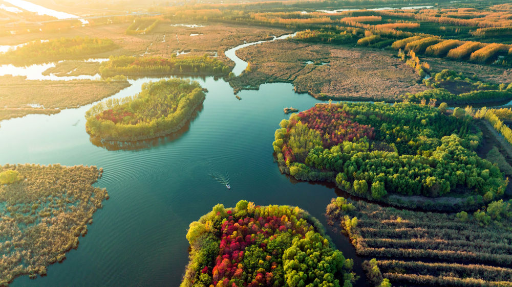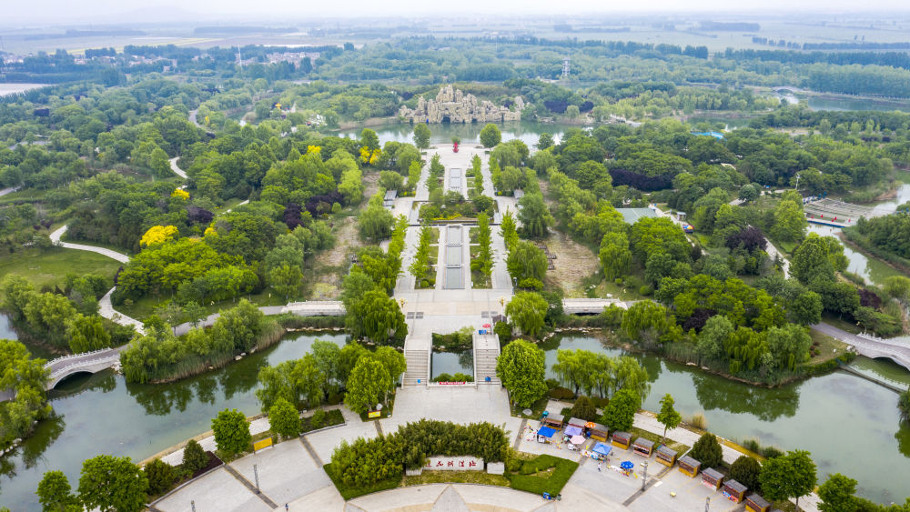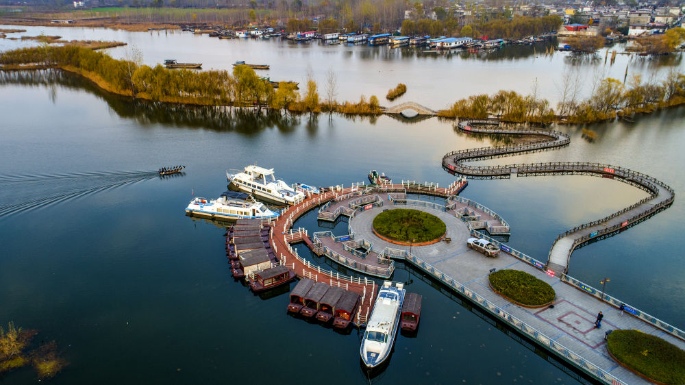 ↑山东省济宁市微山县二级坝湿地公园景色。
