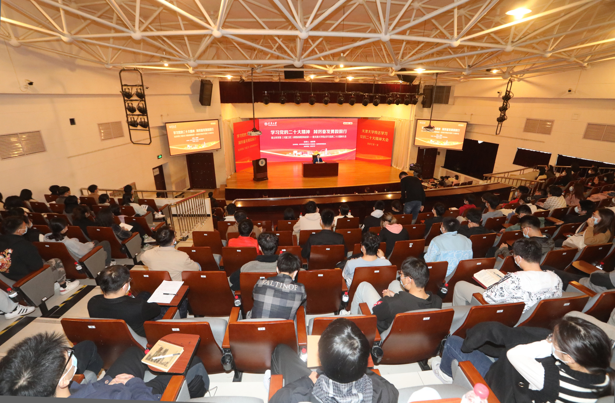 11月8日,首场巡讲报告会在天津大学举行。报告会特别邀请党的二十大代表、第二十届中央候补委员、中国工程院院士、天津大学党委副书记、校长金东寒同志作题为《深入学习党的二十大精神,努力掌握科学的思想方法》的报告。金东寒校长分享了现场聆听党的二十大报告、领会党的二十大精神的所学所思所感,用生动的中国故事、震撼的发展数字,从10个维度介绍了新时代非凡十年的历史性变革与成就;用8个“深刻认识”带领师生深刻领悟“两个确立”的决定性意义,深刻领悟中国式现代化事业赋予高等教育的时代责任。