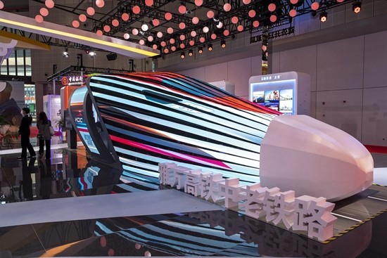 自去年12月中老铁路(昆明—万象)通车后,各方对它带来的开放机遇十分关注。图为第五届进博会上,“中国这十年——对外开放成就展”展台的雅万高铁、中老铁路展示区。视觉中国供图