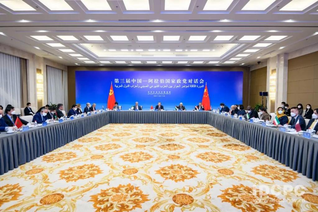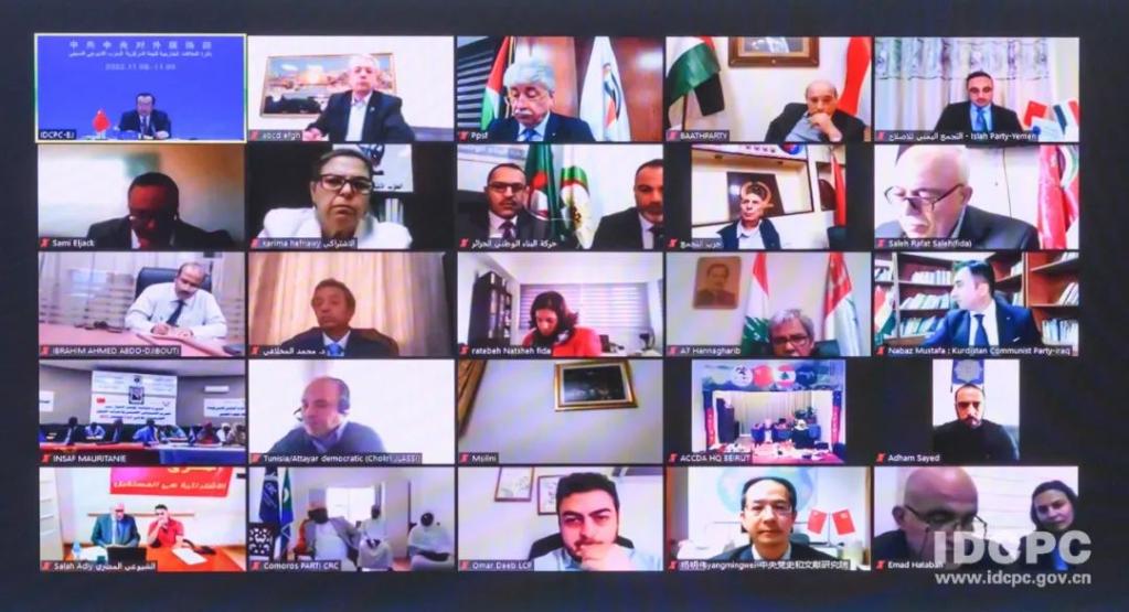 11月8日,中共中央对外联络部以线上线下相结合方式举办第三届中国-阿拉伯国家政党对话会。阿尔及利亚民族解放阵线党领导人、民族院议长古吉勒,也门全国人民大会党副总书记、议长巴尔卡尼等阿拉伯国家政党领导人,以及部分阿拉伯国家驻华使节参会。中联部负责同志向阿方介绍了中共二十大主要情况。