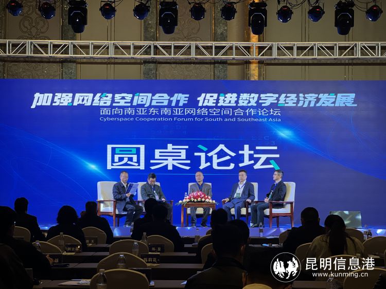 在圆桌论坛环节,云南省人大常委会委员,云南大学软件学院院长姚绍文、云南大学经济学院副院长,云南数字经济研究院常务副院长张国胜、昆明理工大学信息工程与自动化学院副院长王红斌、云南省电子商务协会会长申和平、GMS跨境电子商务合作平台企业联盟主席易宏就“网络空间治理”“数字经济合作”等相关议题展开讨论,现场气氛热烈。