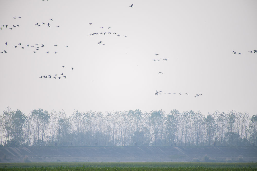 ↑这是11月10日在湖南西洞庭湖湿地上空拍摄的候鸟。