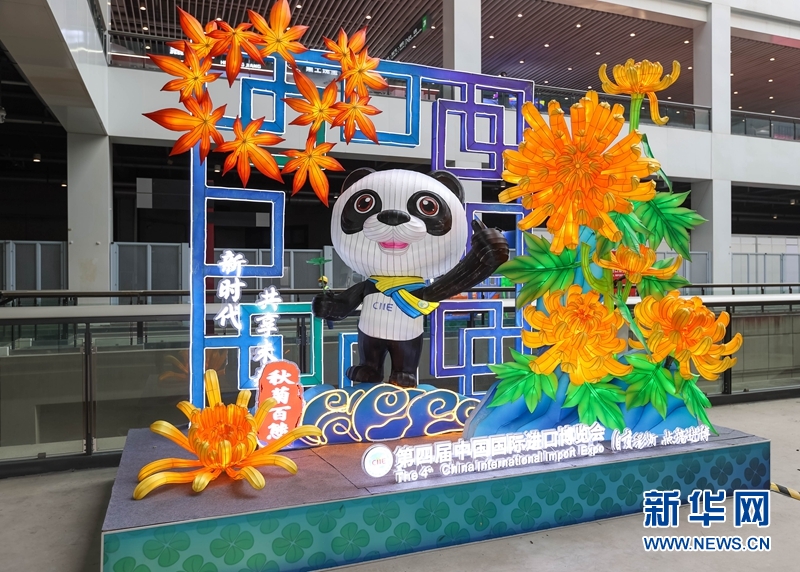 2021年11月9日,在第四届中国国际进口博览会上,来自四川省自贡市的彩灯扮靓国家会展中心(上海)。新华社 记者王翔/摄