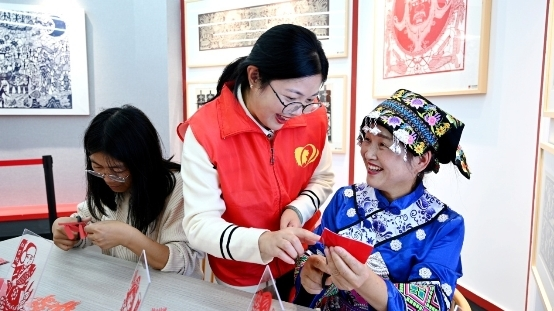 11月7日,江苏省南通市海安市南莫镇“石榴花开 同心向党”民族之家组织各民族代表参观非遗展馆。他们亲身体验和感受书画、剪纸等中华优秀传统文化,铸牢中华民族共同体意识。