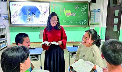 “活”起来的课堂,才能真正感染人、启发人。我改变了以往的教学模式,决定摸索新路:带着学生“玩语文”!例如,在讲解《孙权劝学》一课时,我设置情境、角色互换,请学生现场劝说听课老师好好学习,学生们积极参与,露出了开心的笑容。渐渐地,语文课上,学生们的眼睛亮了起来,我仿佛能听到他们的快乐在汩汩流淌。不久后,我和学生组织了“珍珠诗社”、开展了“飞花令”活动,让学生们尽情徜徉于古典诗词的海洋中……