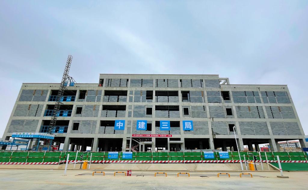 位于兰州新区的中国移动数据中心工程已全面封顶,开始二次结构施工。(中建三局西北公司供图)