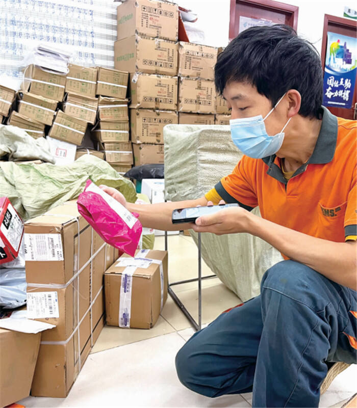 快递小哥正在清点货品 供图