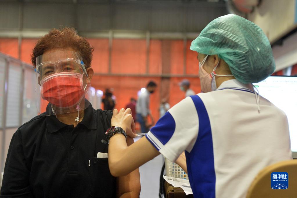 这是市民在泰国曼谷接种中国科兴新冠疫苗(2021年5月12日摄)。新华社发(拉亨摄)