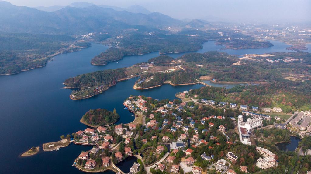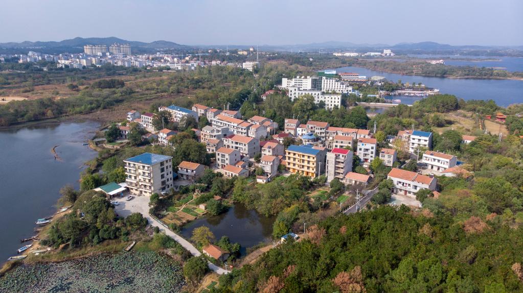 新华社武汉11月13日电(记者龚联康 熊翔鹤)湖水澄澈,天空湛蓝。黛青色的半岛上,一幢幢民居整齐地排开,和煦的阳光洒在湖畔的坡地上,缤纷的屋顶宛如调色盘上的颜料格……初冬时节,漫步在武汉市黄陂区木兰乡雨霖村,优美的湖滨田园风光让人心旷神怡。