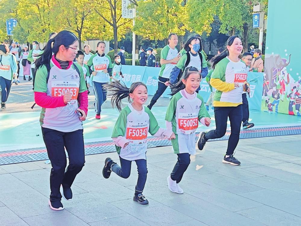 在亲子赛道上,推着婴儿车“驰骋”的小麦母子成为了焦点。“上一次参赛时,我怀着孕。”小麦告诉记者,自己是户外运动爱好者,即使怀孕也挡不住参加户外运动的热情。