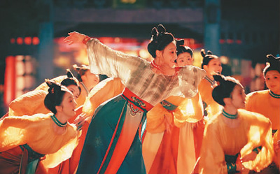 创新国潮晚会形式和内容的,还有11月9日快手联合河南卫视打造的《国潮盛典》。晚会采取“网剧+网综”的新形式,用讲故事的方式串联起10个节目,展现了糖画、木版年画、龙鳞装、刺绣等非遗项目。如果说《唐宫夜宴》诠释的是古代小姐姐们去“上班”时的情景,这台晚会推出的《三彩闹千灯》则展现了她们“下班”后的生活细节和各种兴趣爱好,活泼动人,契合当代人的审美趣味和精神追求。