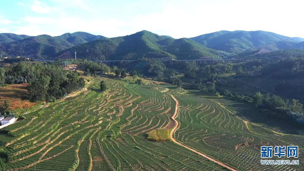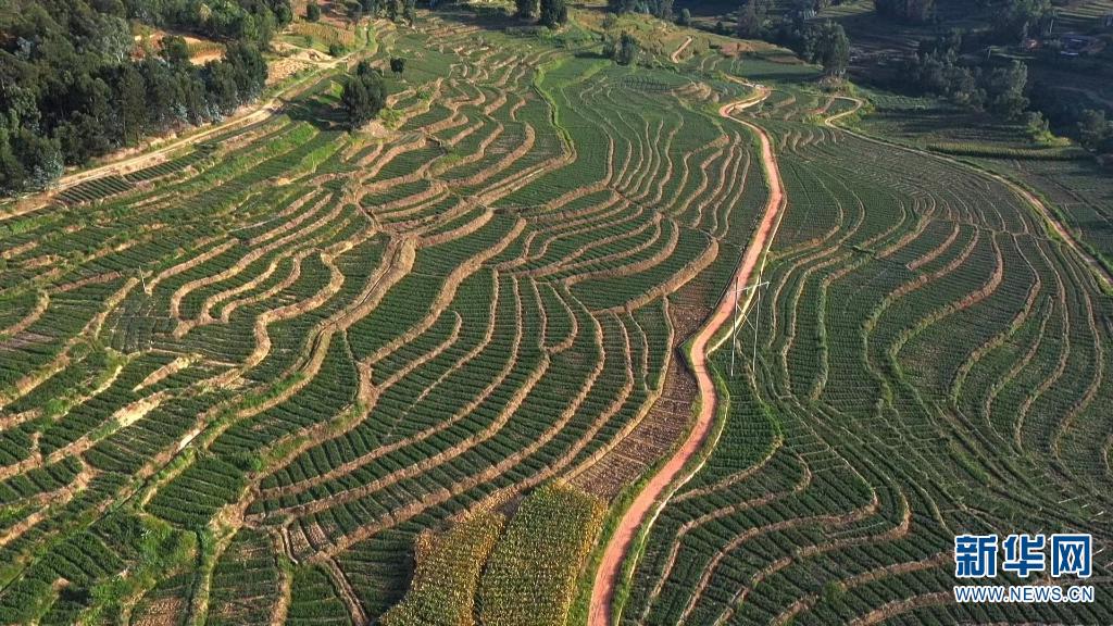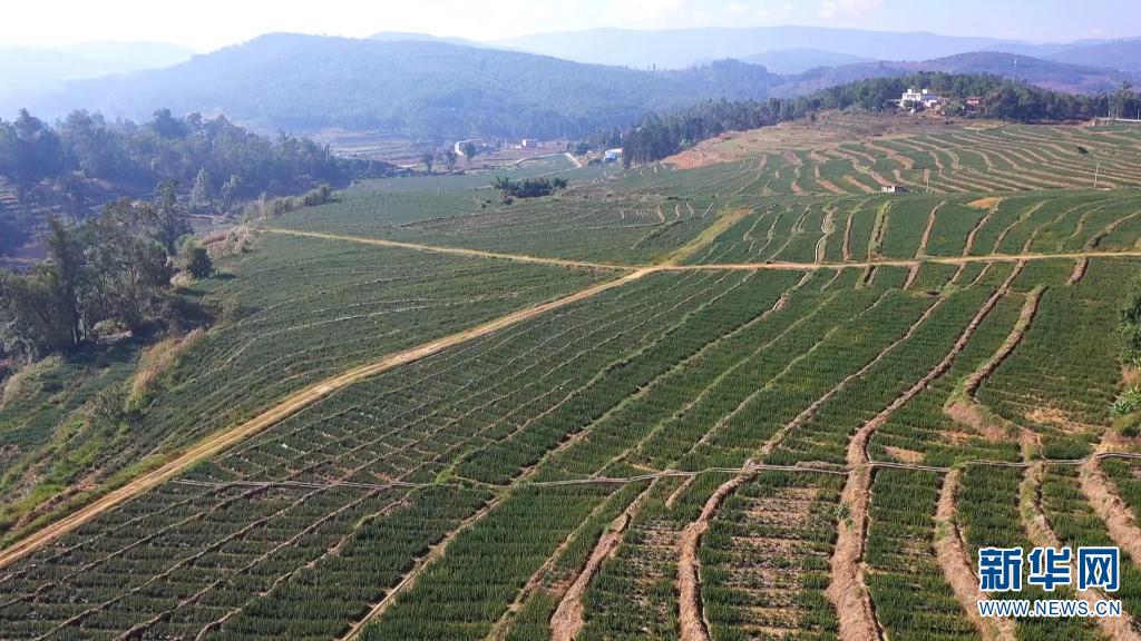 航拍迷迭香种植基地(摄于11月3日)。新华网发(牟定县融媒体中心供图)