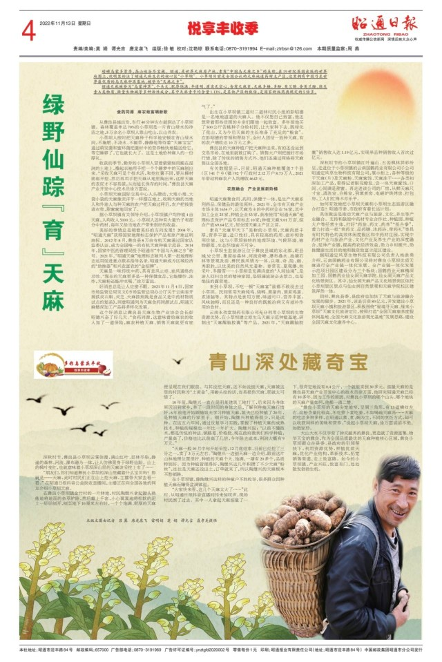 “彝良小草坝的天麻尖宽地窄,呈倒三角形,有13道横纹左右,淀粉含量比较高,冬吃萝卜夏吃姜,不如喝碗天麻汤……天麻的吃法多种多样,在昭通以蒸、煮、焖为主,不同的烹饪方式,却可以收获同样的美味和营养。”说起小草坝天麻,徐万雷滔滔不绝,如数家珍。