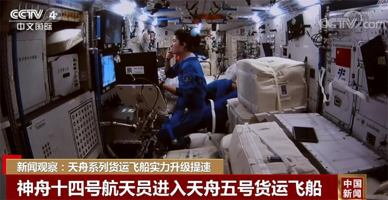 13日14时18分,神舟十四号航天员乘组成功开启天舟五号货物舱舱门,按计划开展货物转运等工作。此次天舟五号上行物资约6.7吨,飞船装载了航天员系统、空间站系统、空间应用领域的货物共计约5吨,携带补加推进剂约1.4吨。除了为神舟十五号乘组3人6个月在轨驻留、空间站组装建造和空间应用领域提供物资保障,还给神舟十四号三名航天员送去了新鲜水果。后续,神舟十四号乘组还将展开机械臂大小臂级联测试和空间科学实验等工作。