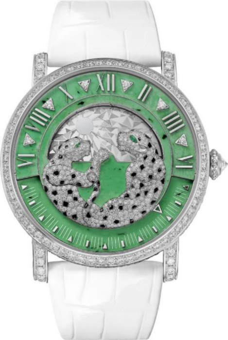 中国限定款作品,白金碧玉猎豹装饰昼夜显示腕表