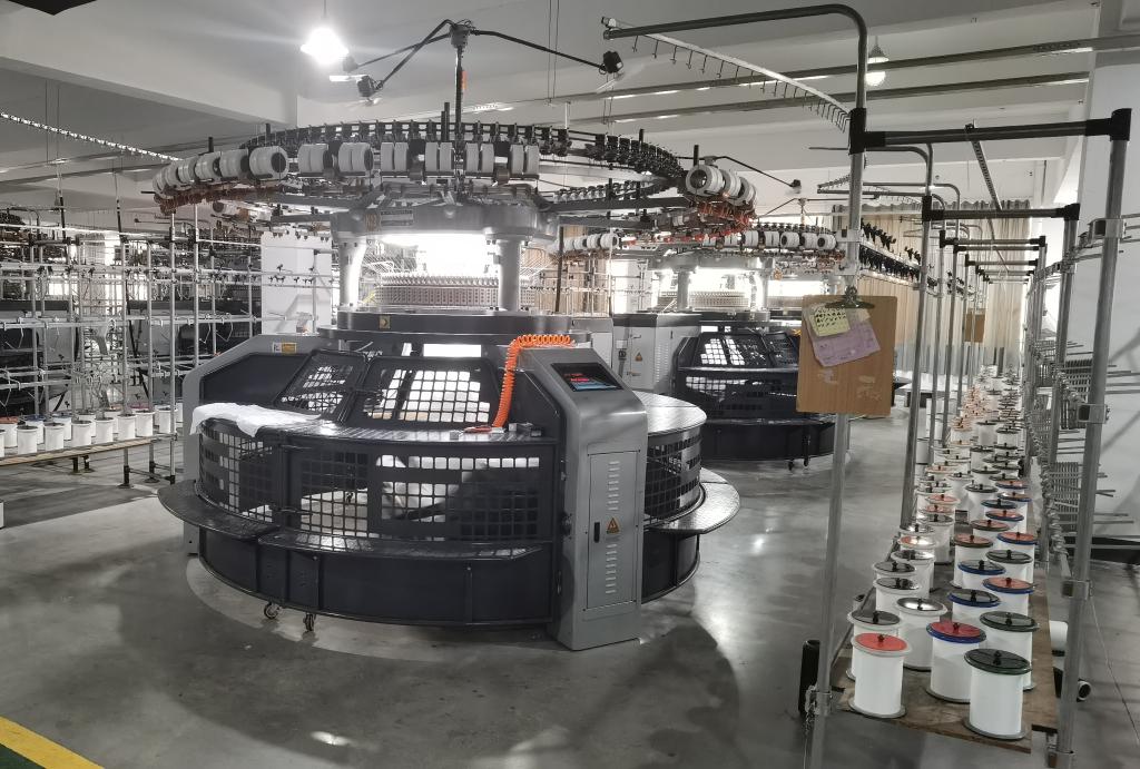 2022年11月11日,绍兴柯桥恒元纺织有限公司圆机车间正在进行纺布作业。新华社记者 顾小立 摄