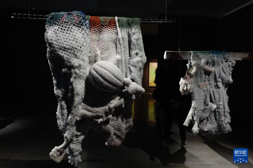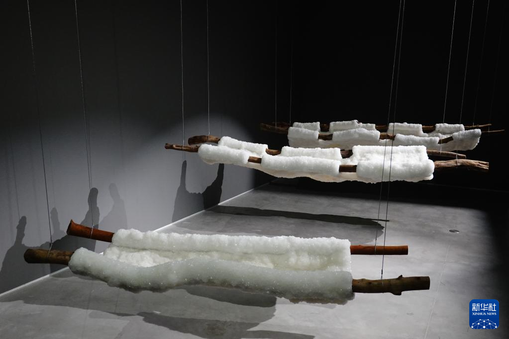 这是11月12日在位于西耶路撒冷的以色列博物馆拍摄的死海盐渍艺术品。新华社记者王卓伦/摄