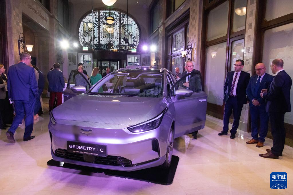 这是11月4日在匈牙利布达佩斯拍摄的吉利几何C型电动汽车。新华社发(弗尔季·奥蒂洛/摄)