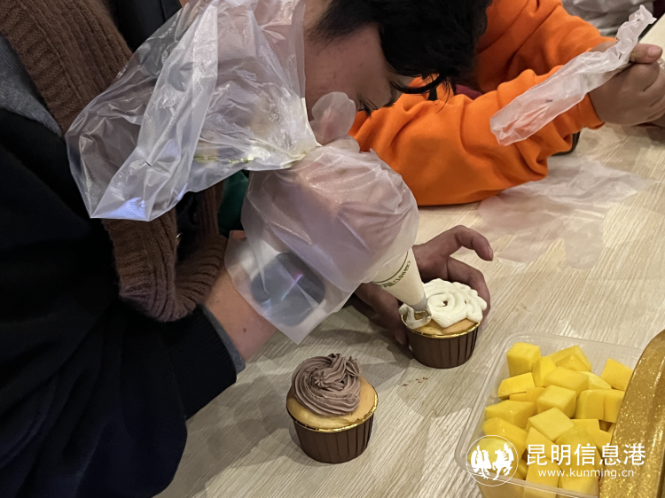下午,活动现场举行了治愈心灵的小型音乐互动会,开展了吉他互动表演、巴乌演奏曲调。在欣赏音乐之余,还有甜品蛋糕制作老师现场教学,在老师指导下,大家纷纷为蛋糕抹上奶油,用水果点缀设计造型,一个个小蛋糕被“装扮”得多彩缤纷。
