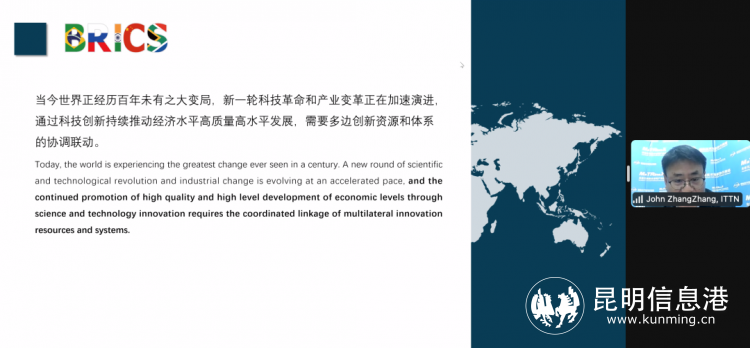 昆明信息港讯 日前,2022“科创中国”金砖国家创新技术产学研合作论坛在昆明圆满落幕。本次协作会议由中国科协科学技术创新部指导,在云南省科学技术厅、云南省科学技术协会的支持下,由中国国际科技交流中心、昆明市科学技术局共同主办,金砖国家技术转移中心、国际技术转移协作网络(ITTN)、昆明市科学技术协会、云南云上云大数据产业发展有限公司共同承办。重点围绕金砖国家创新技术产学研合作的趋势、机遇及挑战,金砖国家科技创新技术跨境合作等主题进行商讨。