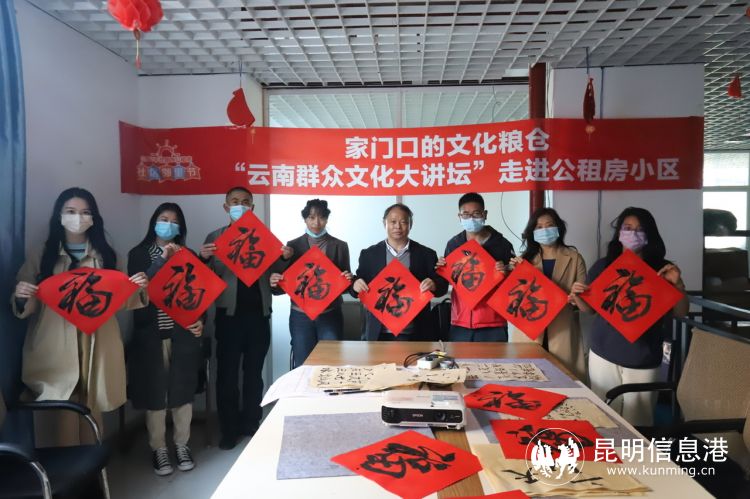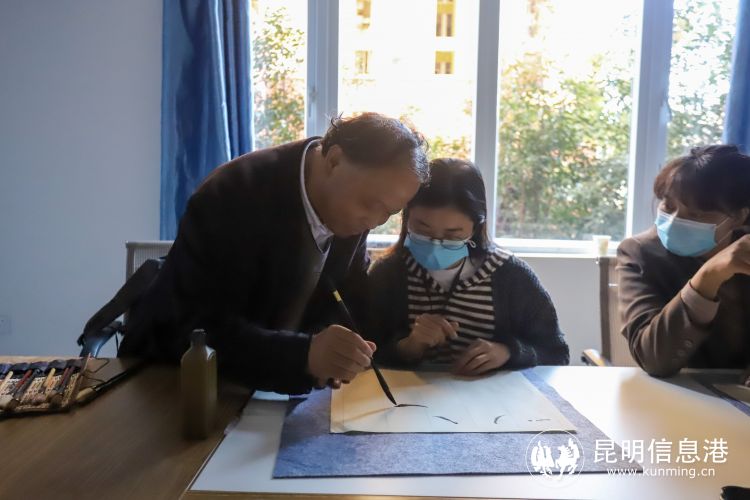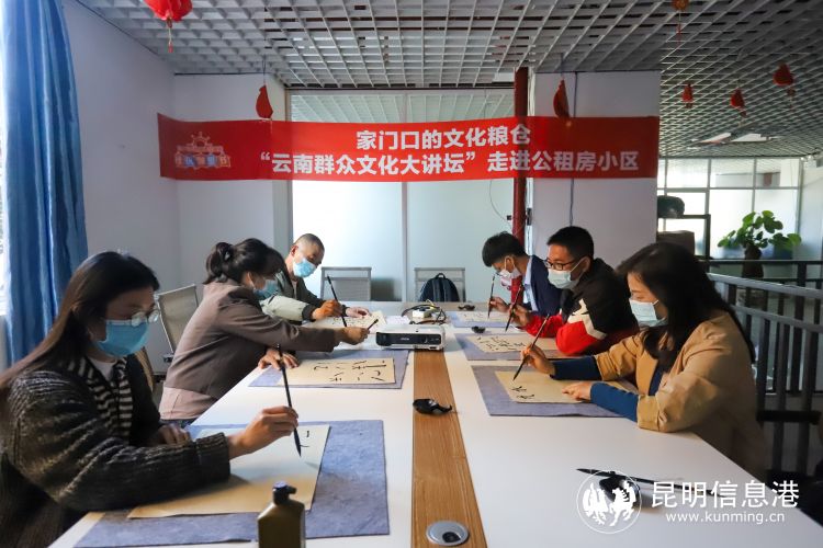 昆明信息港讯 记者上官艳君 11月15日,“家门口的文化粮仓”系列活动之“云南省群众文化大讲坛”走进公租房福泽雅苑小区,特联合云南省文化馆,邀请到云南省文化馆老年艺术大学教师、书法家、画家李月生,为公租房住户送上了家门口的“文化艺术大餐”。