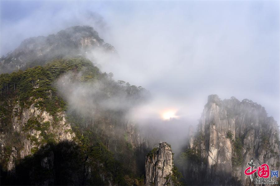 在黄山风景区的始信峰,群峰中时而云海翻腾,时而雾霭朦胧,时而艳阳高照,还出现了佛光奇观,勾勒出一幅幅黄山独有的胜景。